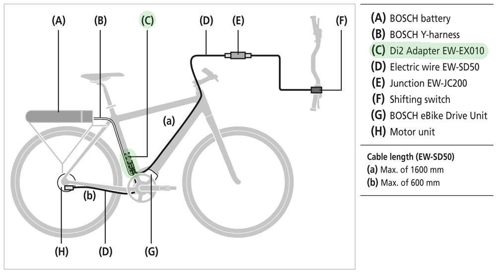 - 1 x adaptateur de câble Shimano Di2 EW-EX010 pour transmission Bosch