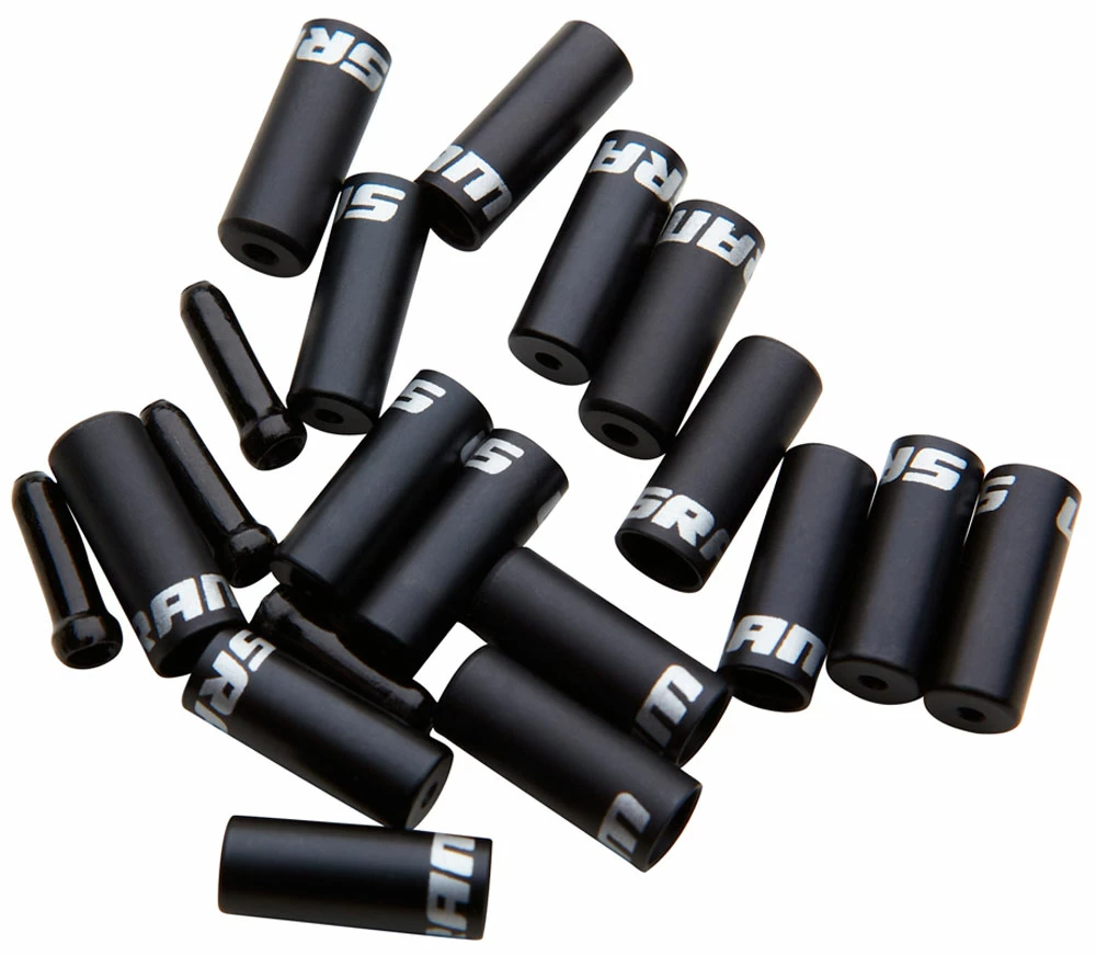 Kit de douilles de butée Sram en aluminium, comprenant : 10 pièces pour la gaine de dérailleur (4mm), 6 pièces pour la gaine de frein (5mm) et 4 douilles d’extrémité pour le câble intérieur.